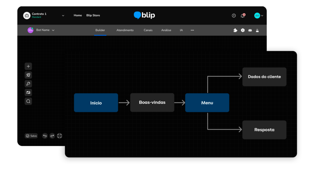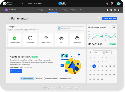 Um contato inteligente vai além de um chatbot comum. Com a Blip, você integra IA conversacional, múltiplos atendentes, automação de vendas e atendimento eficiente no WhatsApp ou em qualquer outro canal, criando experiências personalizadas, metrificadas e escaláveis.