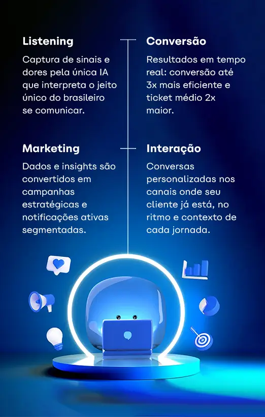 A Blip transforma esses insights em conversas inteligentes nos canais onde o consumidor já está.