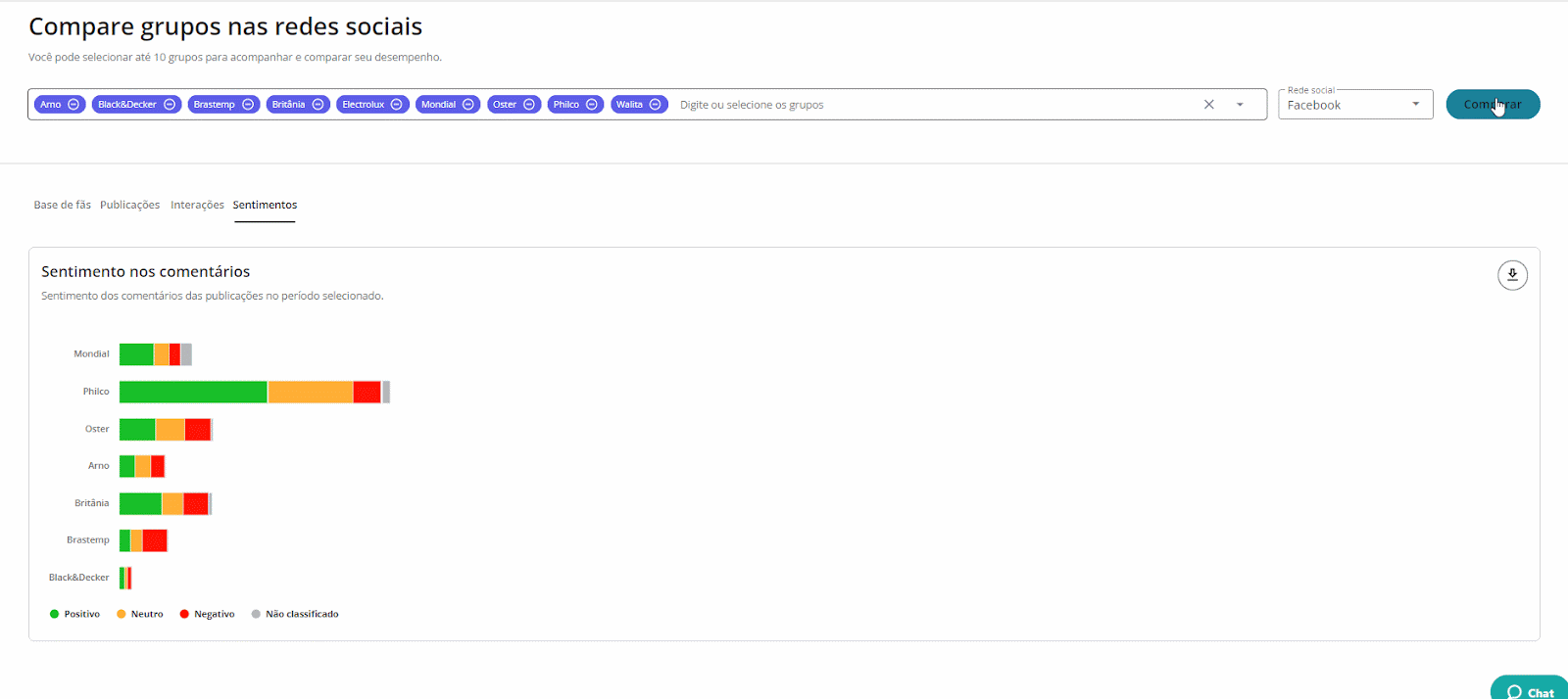 * Comparação de grupos nas redes sociais. 🔍