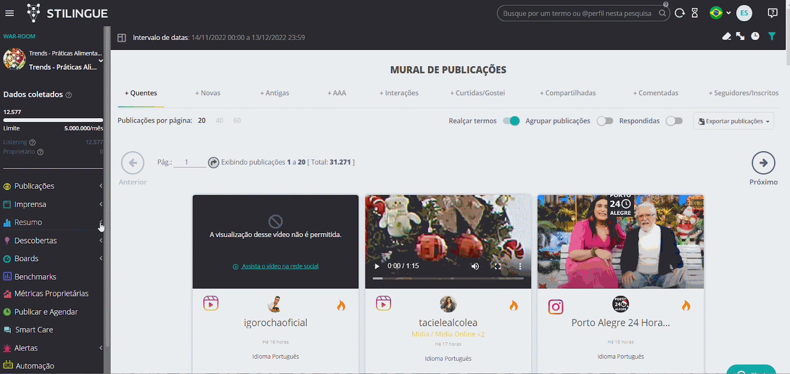 * Trends: análises e recomendações. 🔍